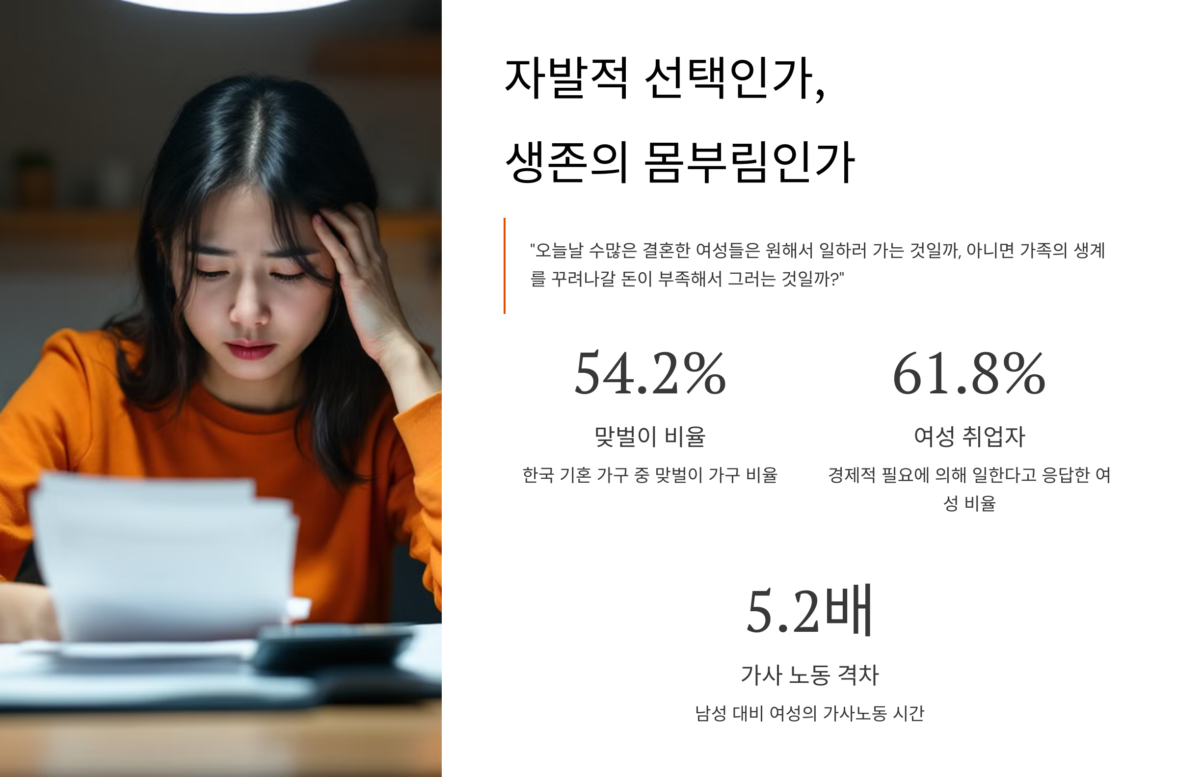 남성의 수입만으로는 생활비를 감당하기 어려운 구조 속에서