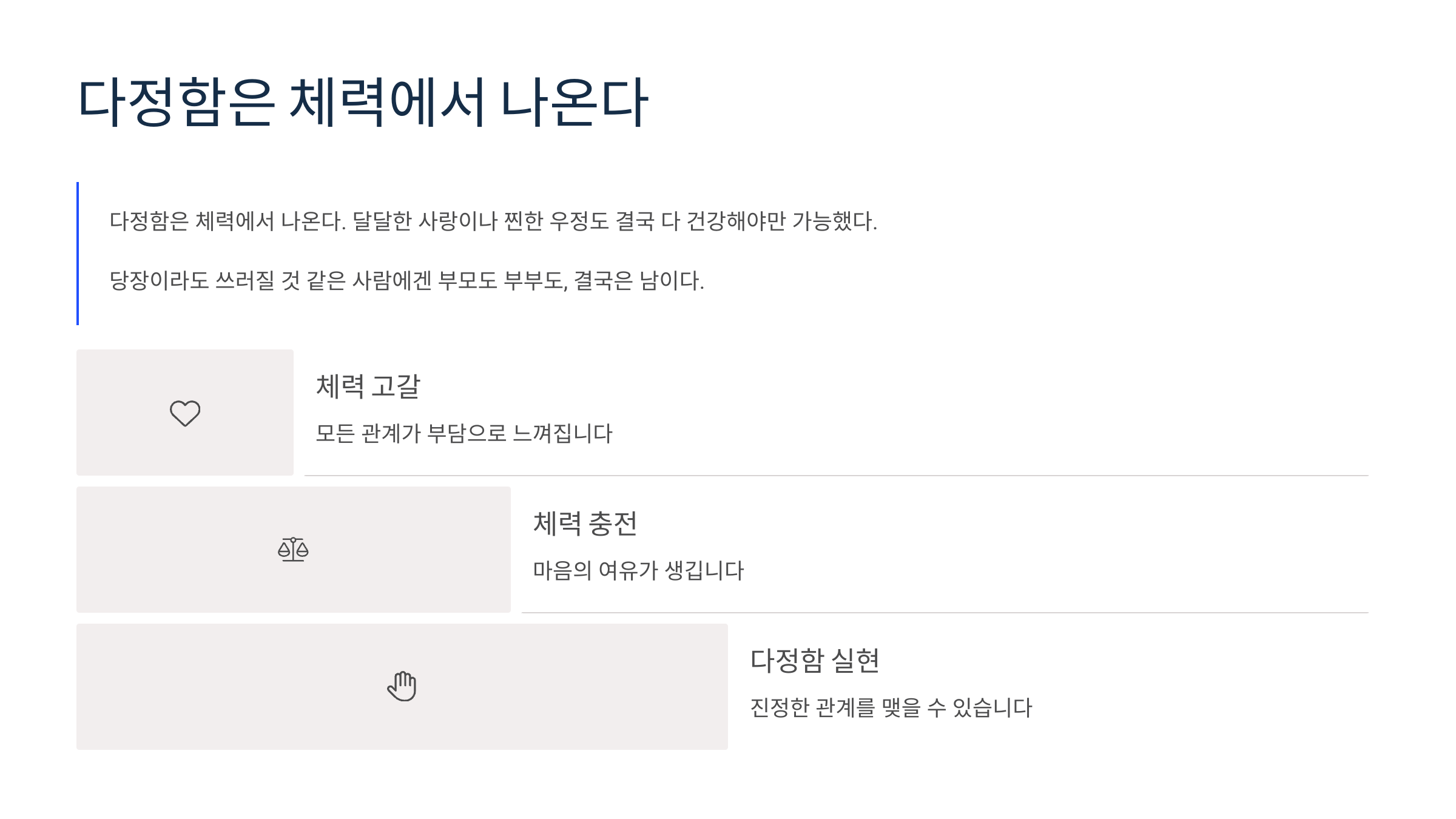 “다정함은 체력에서 나온다.