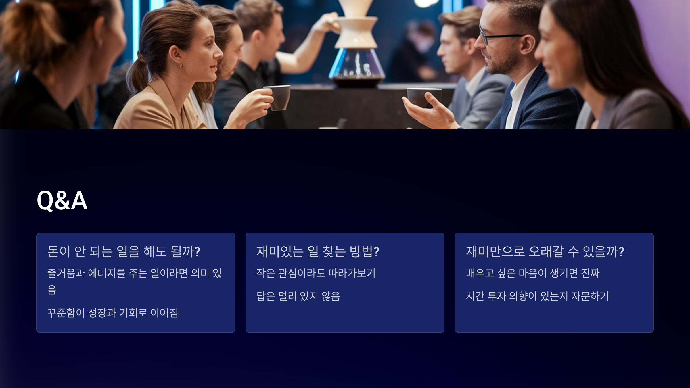 👉 당장은 돈이 안 되더라도, 나에게 즐거움과 에너지를 주는 일이라면