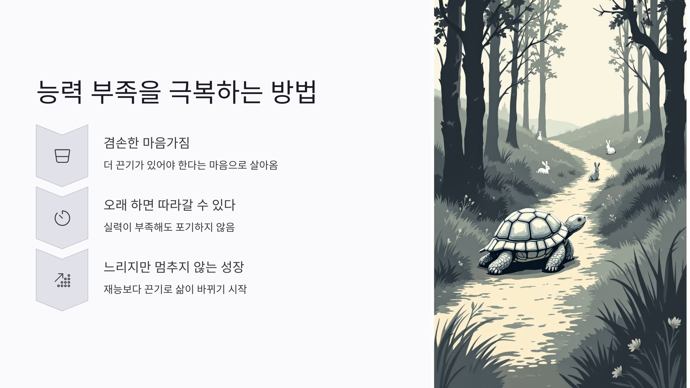 나는 느리게 가더라도 멈추지 않는 방식으로 성장했다.