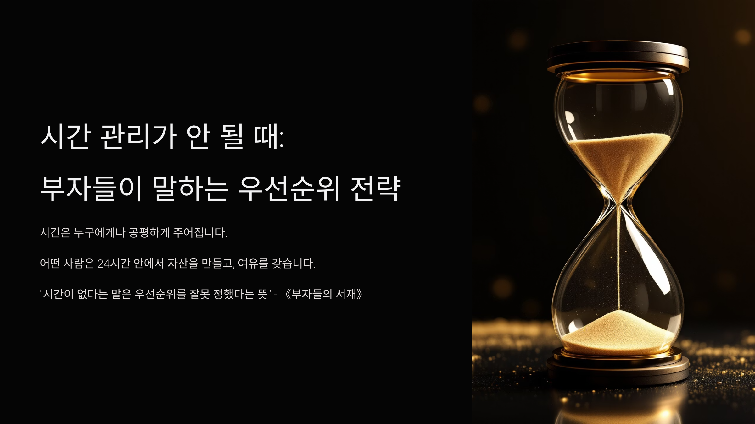 하지만 어떤 사람은 그 24시간 안에서 자산을 만들고, 여유를 갖고, 삶의 질을 높이며 살아갑니다.