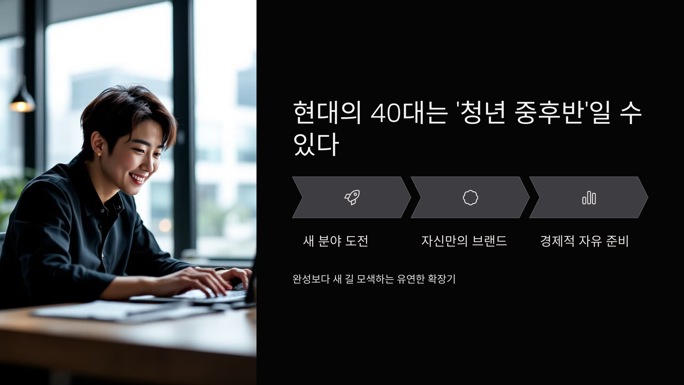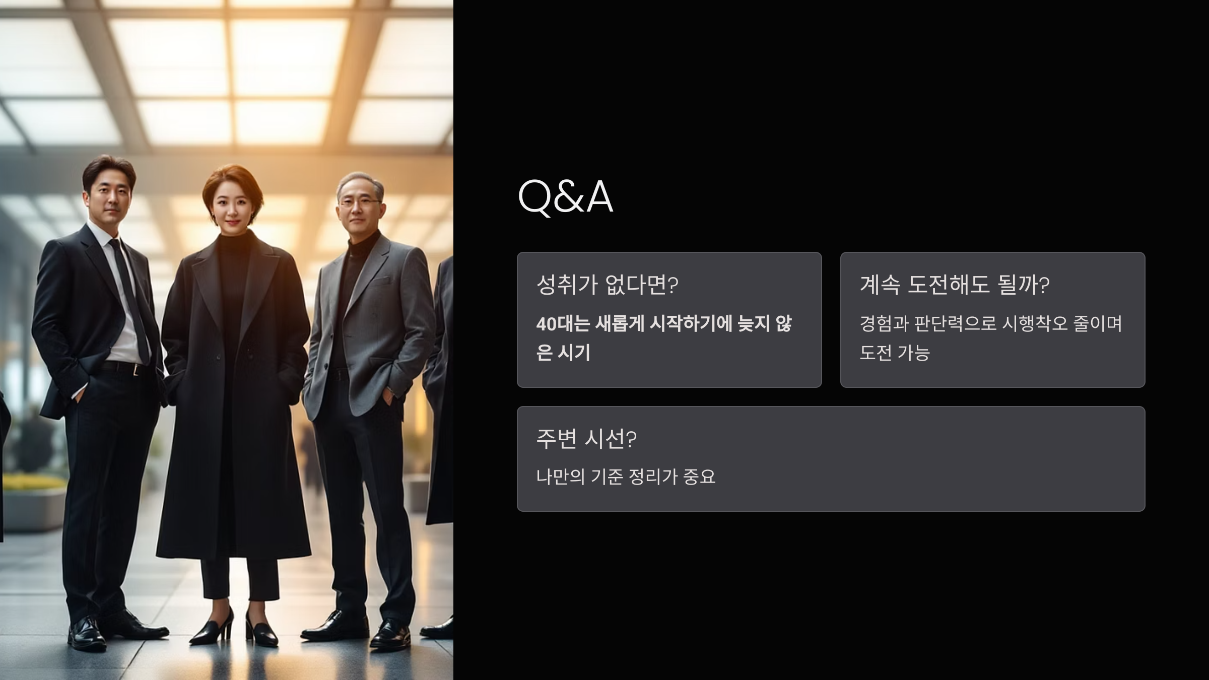 40대는 새롭게 시작하기에도 전혀 늦지 않은 시기입니다.