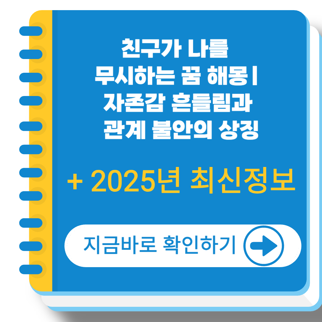 친구에게 무시당하는 꿈은 현실에서 그 친구가 나를 미워한다는 뜻이 아니라, 내가 내 자신을 어떻게 평가하고 있고, 타인에게 인정받고 싶은 욕구가 얼마나 강한지를 보여주는 무의식의 반영입니다.
