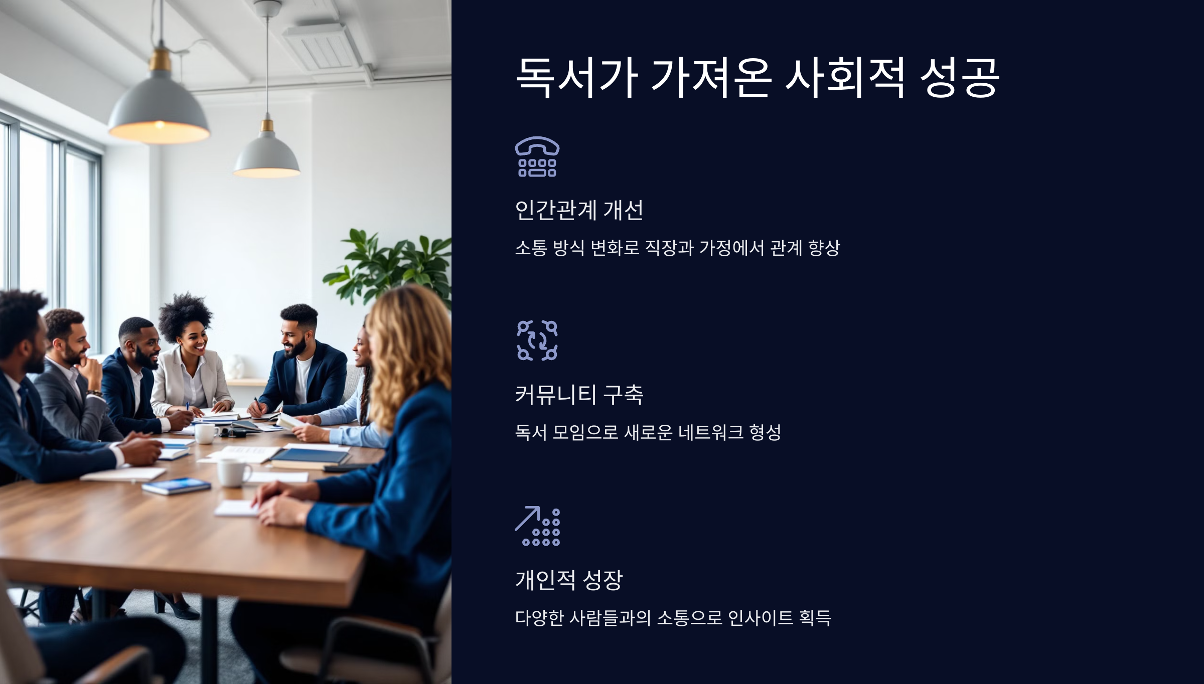 독서 모임을 시작한 장혜린 씨는 매주 한 권의 책을 읽고 토론하며 다양한 사람들과 소통했습니다. 이를 통해 그녀는 새로운 네트워크를 형성했고, 업무와 개인적인 성장 모두에서 큰 도움을 얻었습니다.