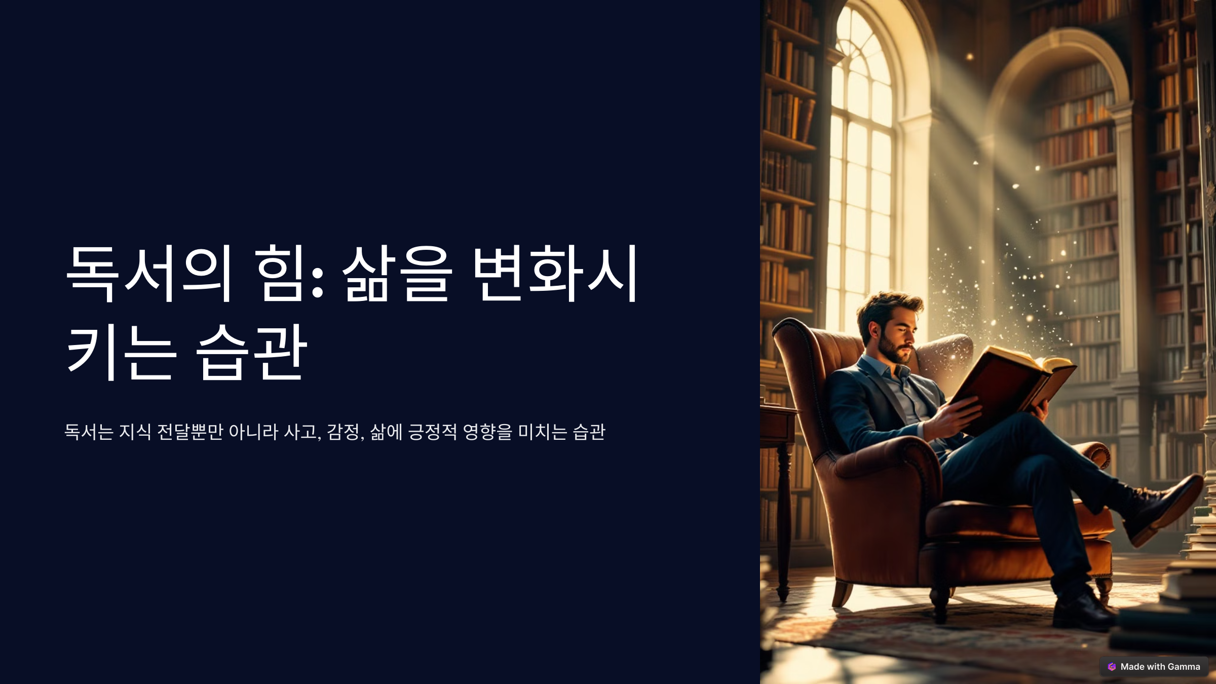 독서는 단순한 취미를 넘어 삶의 방향을 제시하고, 성장을 이끄는 중요한 도구입니다. 매일 조금씩이라도 독서를 통해 사고력, 창의력, 공감 능력을 키우며 스스로를 성장시켜 보세요. 독서 습관은 하루아침에 완성되지는 않지만, 그 과정에서 얻는 경험과 성취감은 우리 삶에 긍정적인 영향을 미칠 것입니다.