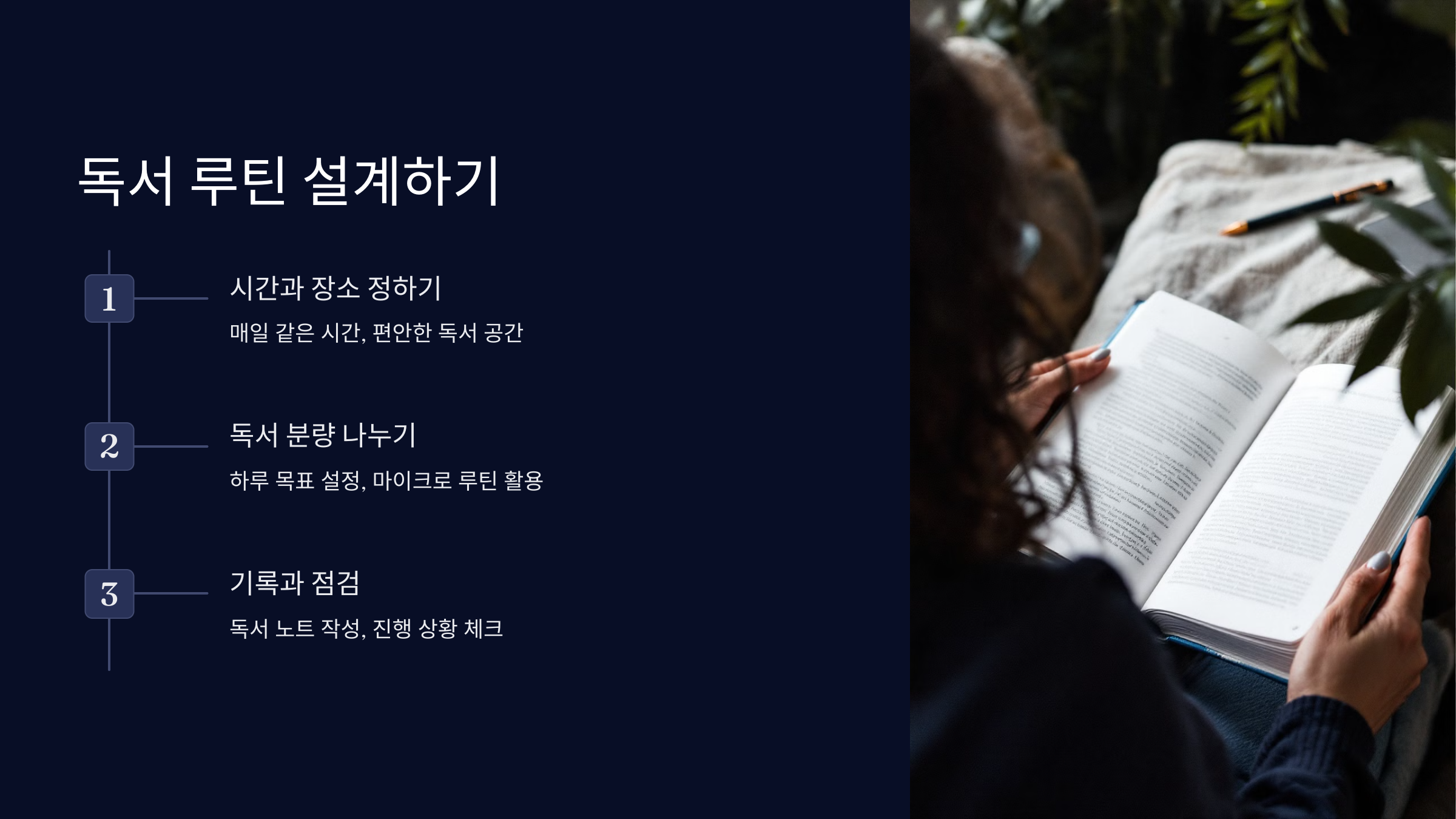 매일 같은 시간에 독서를 하면 루틴 형성에 도움이 됩니다.