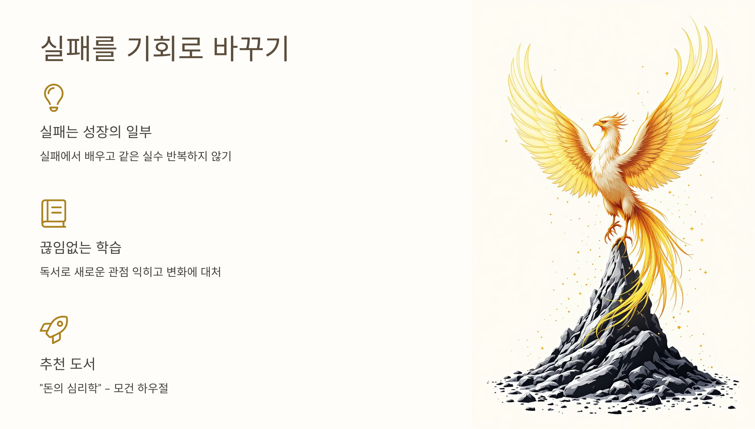 부자는 실패를 두려워하지 않습니다. 오히려 실패에서 교훈을 얻고, 이를 성장의 발판으로 삼습니다.