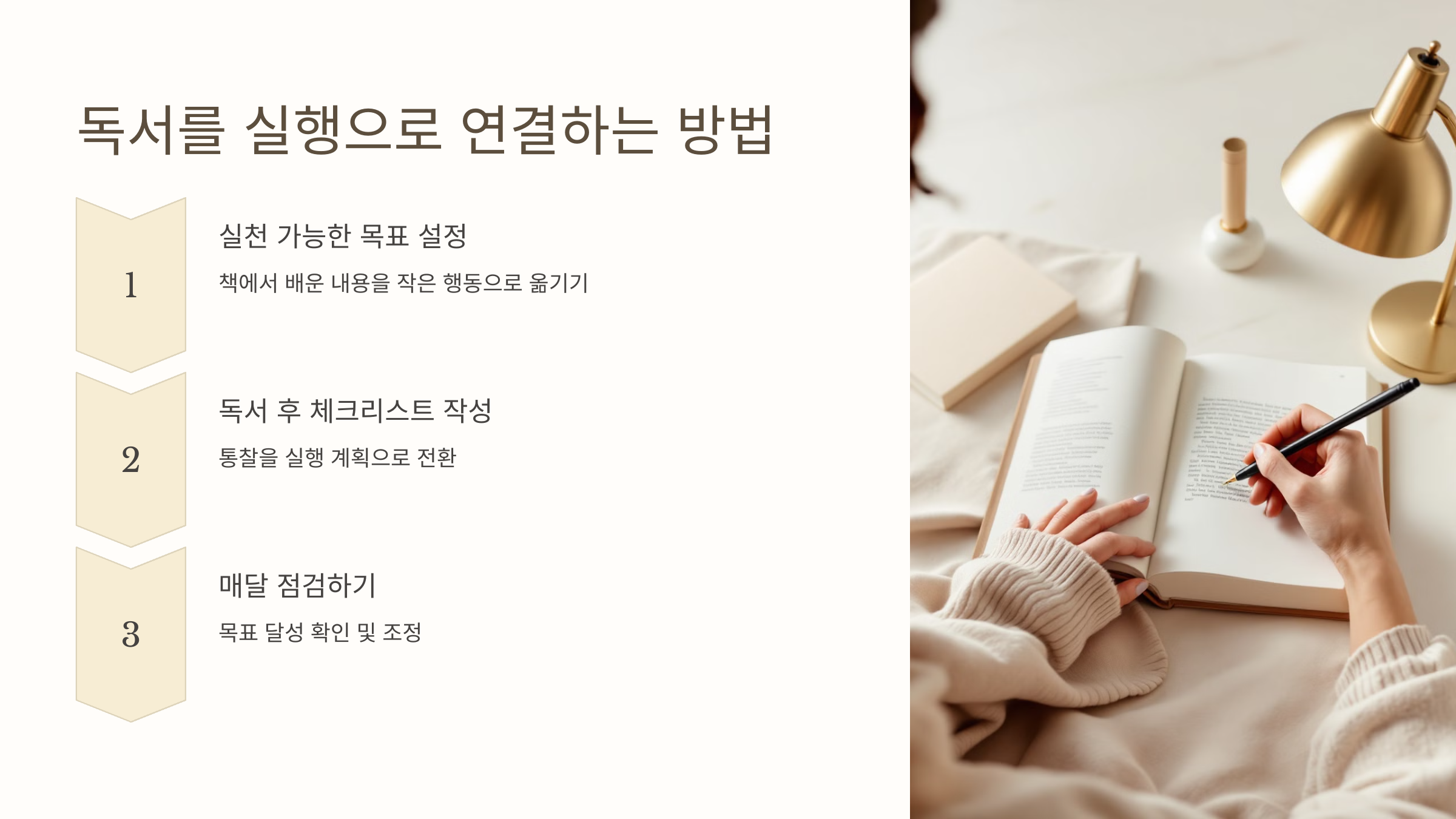 책에서 배운 내용을 작은 행동으로 옮기세요.