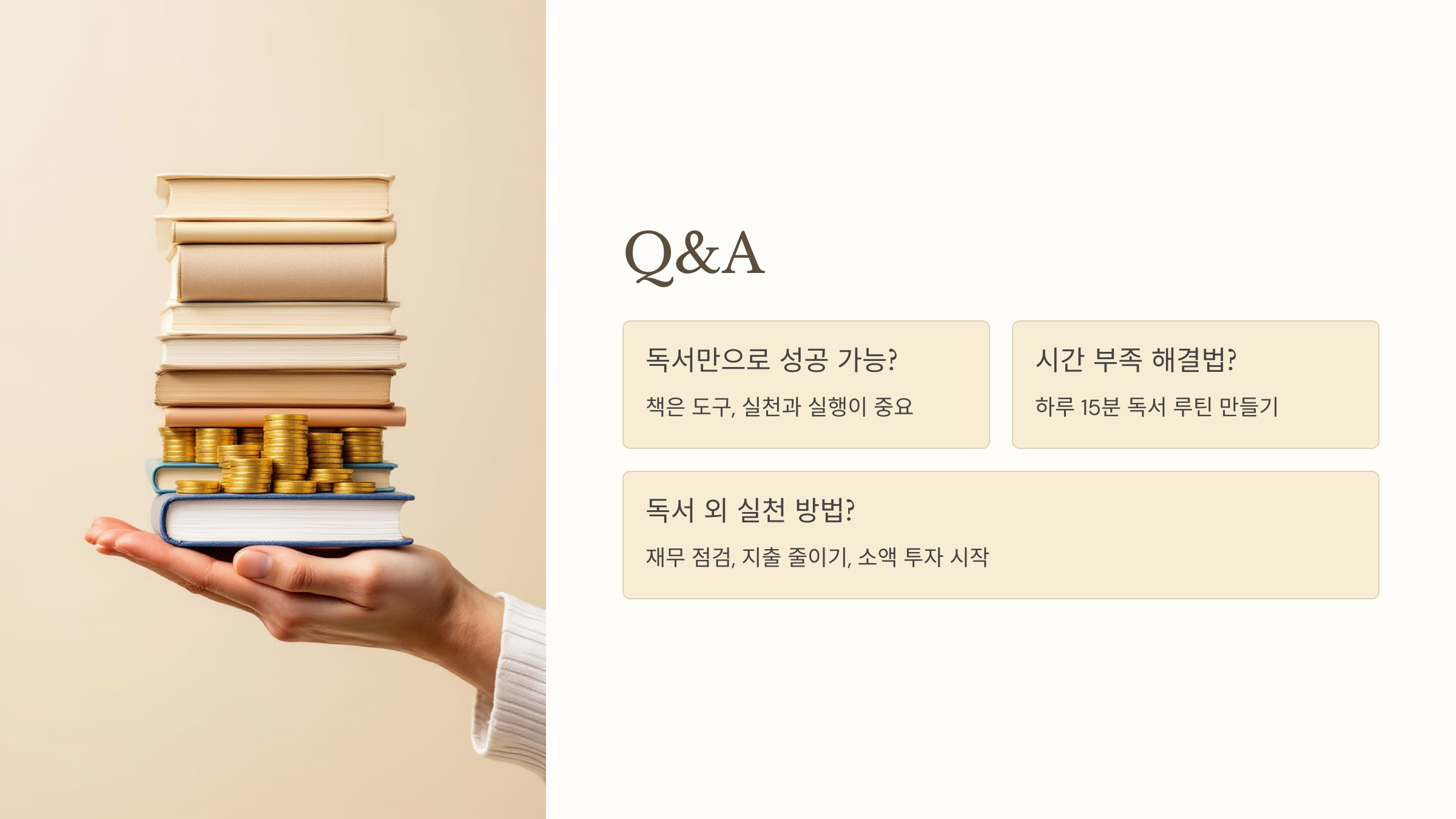 Q1. 책을 읽는 것만으로 경제적 성공이 가능할까요?