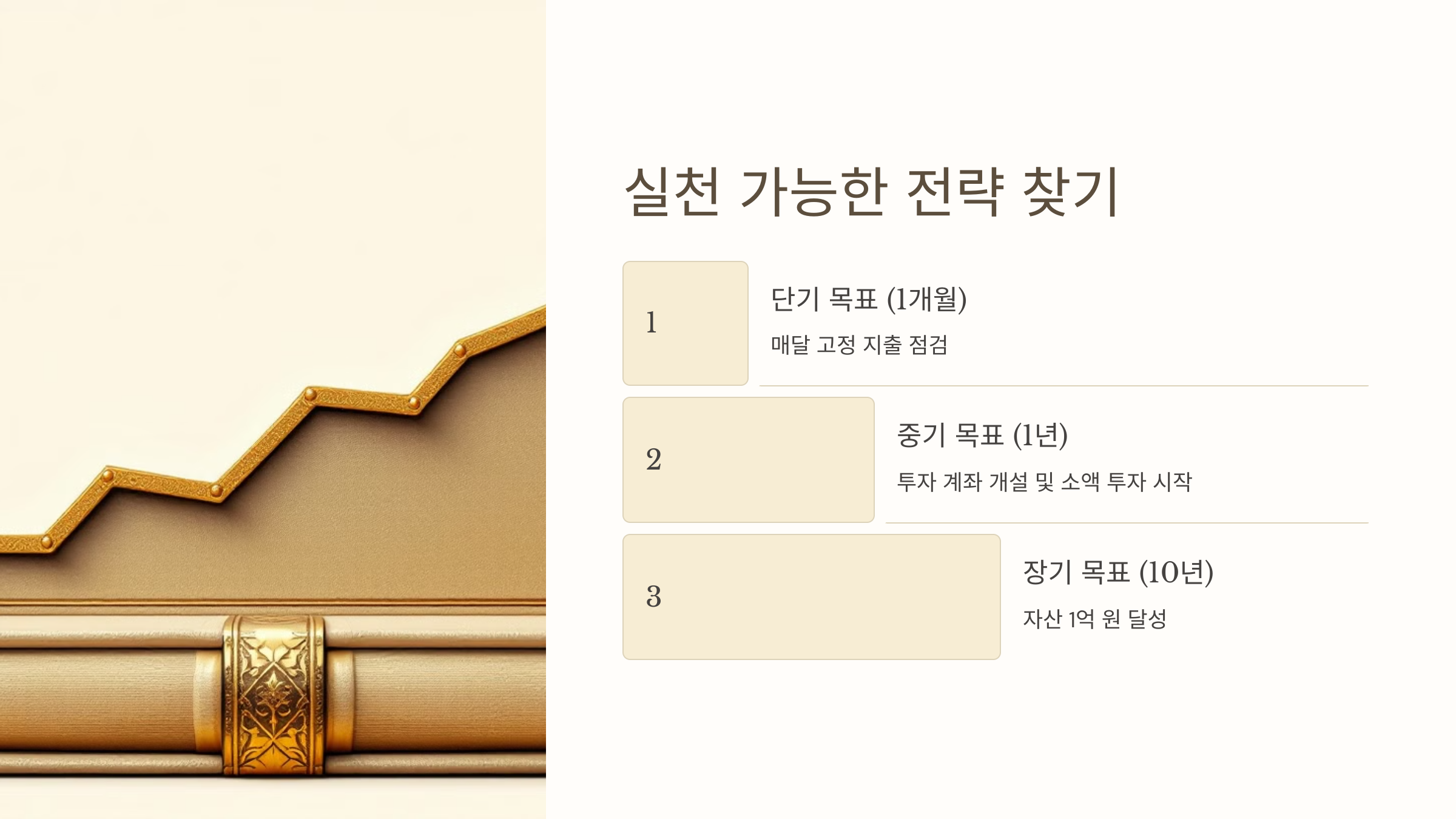 - 장기 목표: 10년 안에 자산 1억 원 달성.