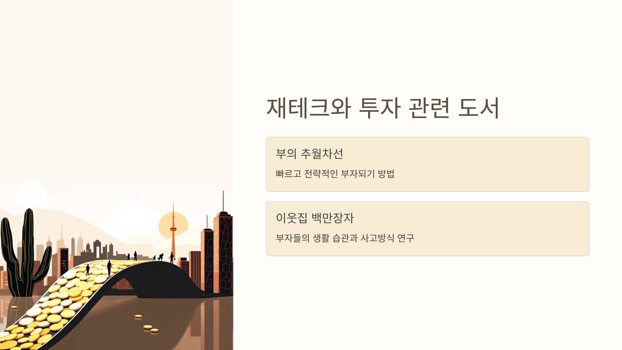 부자들의 생활 습관과 사고방식을 연구하며, 소비를 줄이고 자산을 늘리는 방법을 알려줍니다.- 핵심 메시지: 소리 없이 부를 축적하는 것이 진정한 부자의 삶이다.