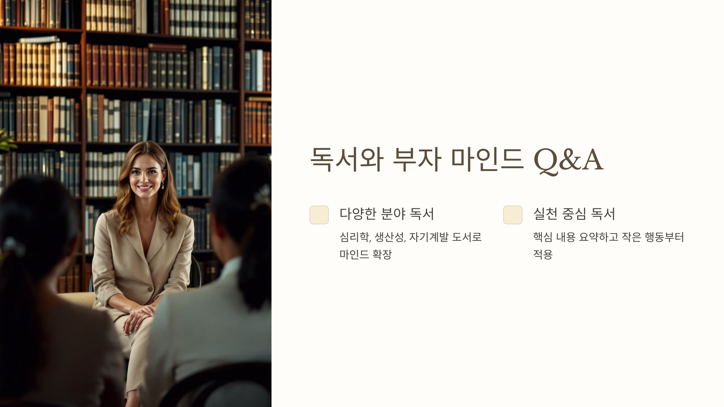 독서는 단순히 지식을 얻는 데 그치지 않고, 부자 마인드를 형성하고 행동으로 옮기는 강력한 도구입니다. 오늘 한 권의 책을 선택해 읽기 시작하세요. 작은 습관이 당신의 재정적 미래를 바꿀 수 있습니다.