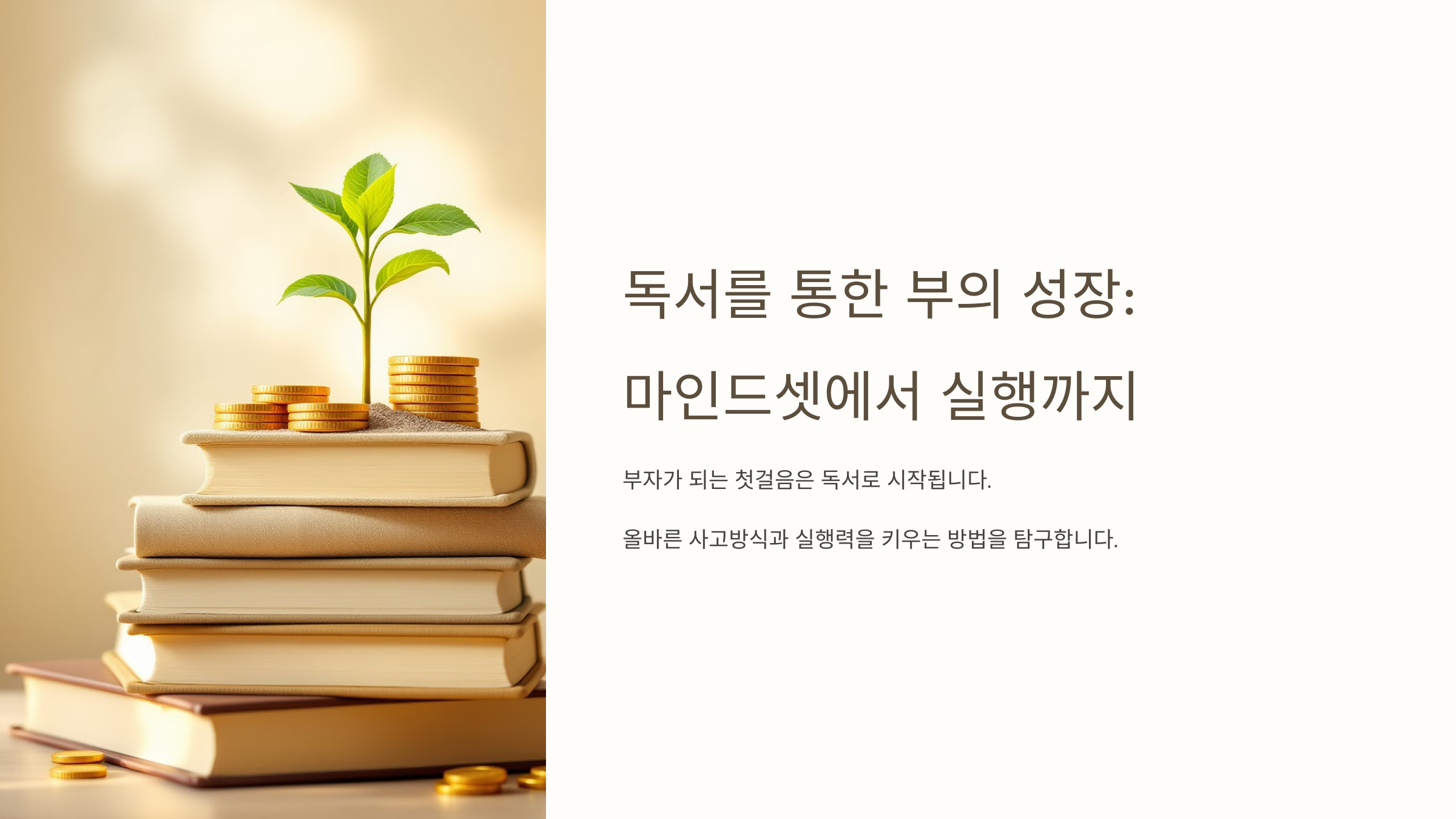 독서는 부자들의 사고방식을 배우고, 돈에 대한 관점을 바꿀 기회를 제공합니다.
