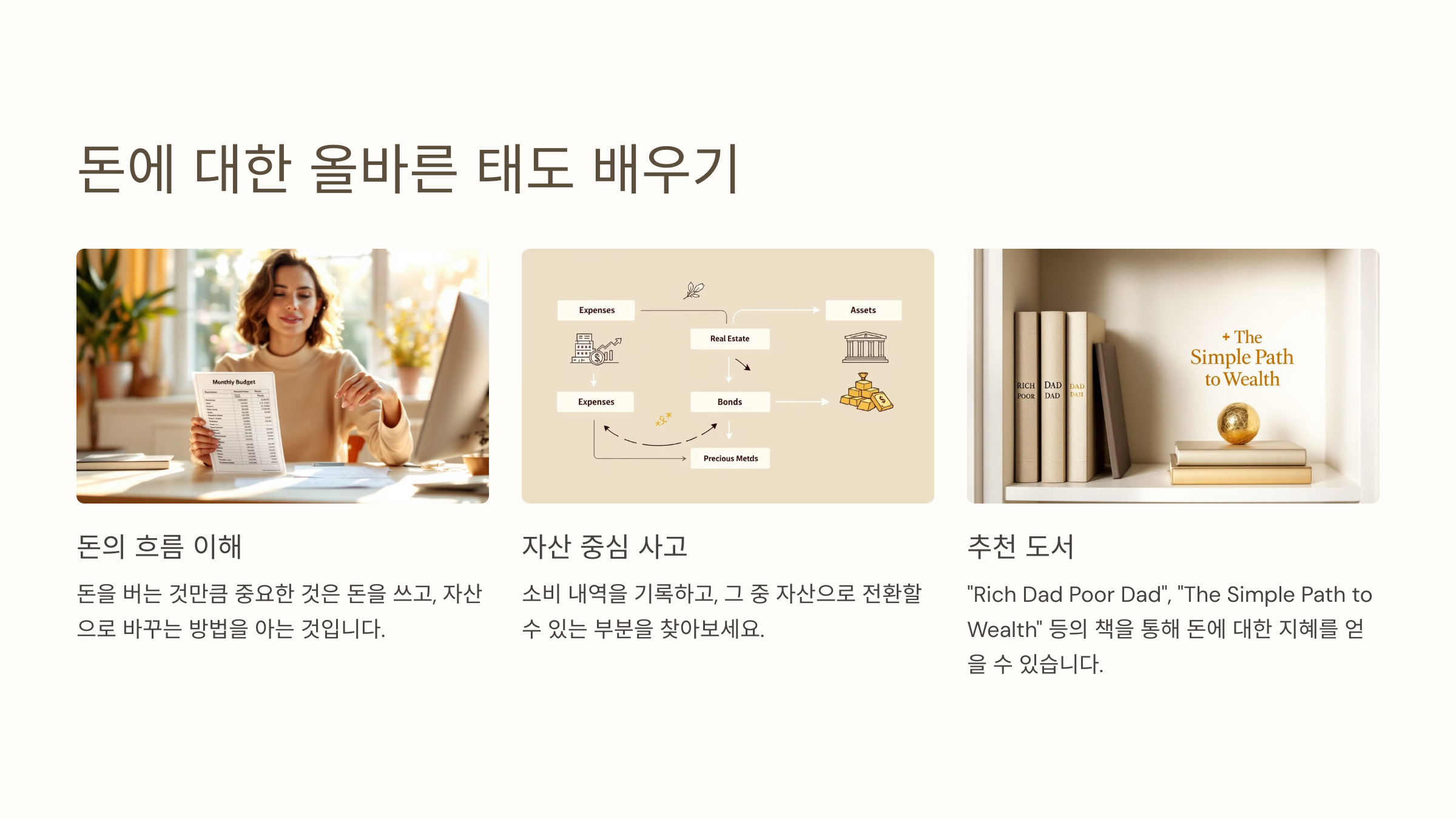 돈을 쓰는 방식 대신, 자산을 구축하는 방식을 배워야 합니다.- 실천 팁: