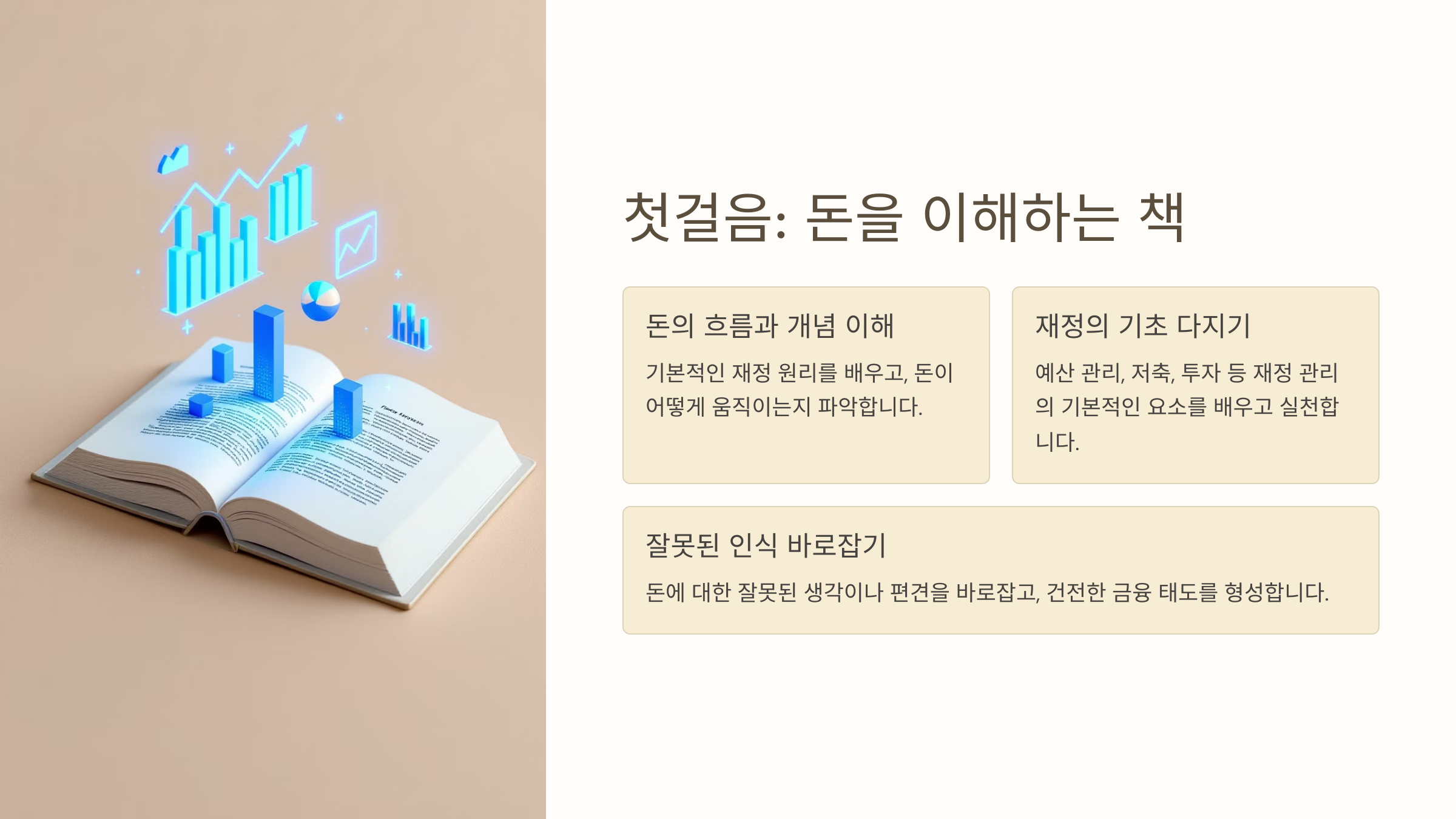부자 마인드의 기본은 돈의 흐름과 개념을 이해하는 데서 시작됩니다. 돈에 대한 잘못된 인식을 바로잡고, 재정의 기초를 탄탄히 다지는 책을 읽어보세요.