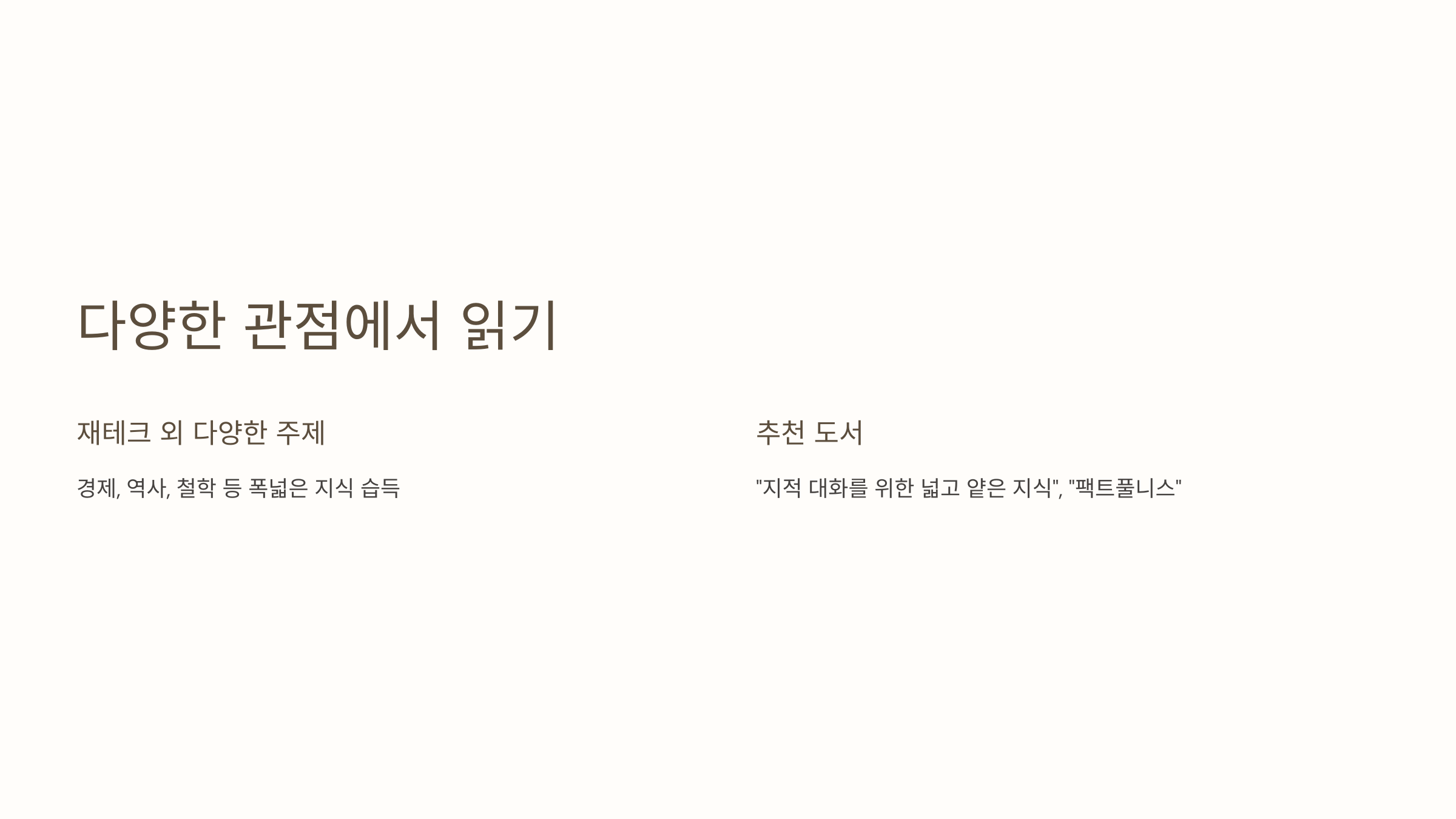 경제, 역사, 철학 등 다양한 주제를 흥미롭게 풀어낸 책으로, 사고의 폭을 넓힙니다.