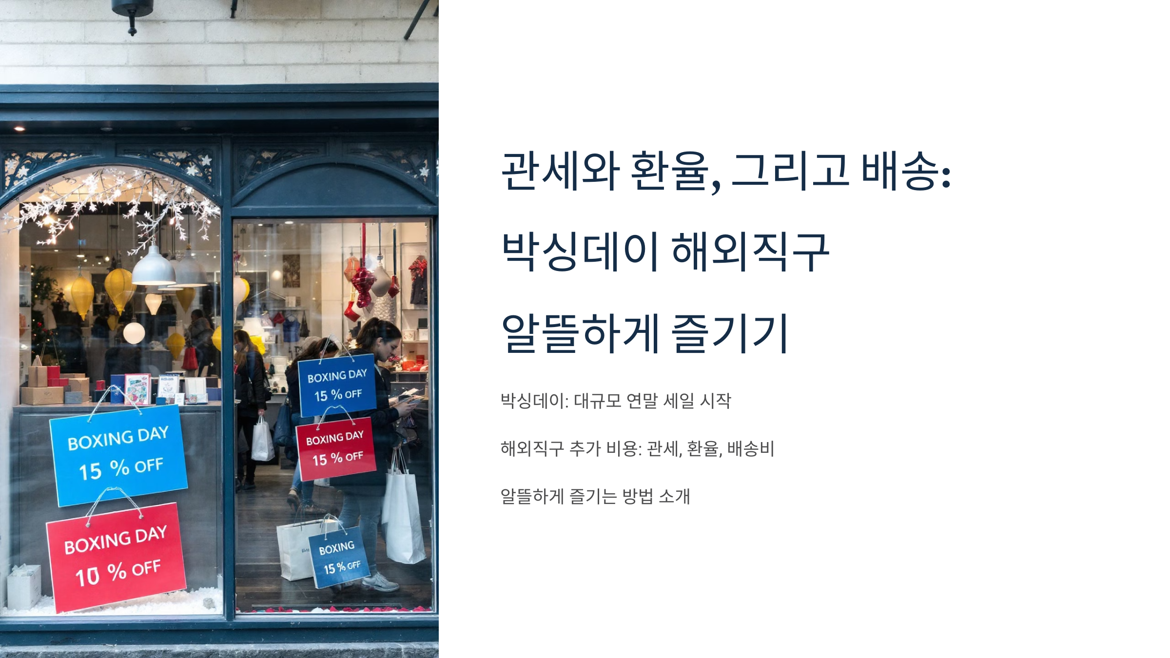 박싱데이(12월 26일)는 전 세계적으로 대규모 연말 세일이 시작되는 날로, 해외 브랜드와 다양한 제품을 큰 폭으로 할인받을 수 있습니다. 하지만 해외직구에서는 관세, 환율, 배송비와 같은 추가 비용이 발생합니다. 그럼에도 불구하고 박싱데이 직구가 더 저렴한 이유와 이를 알뜰하게 즐기는 방법을 살펴보겠습니다.