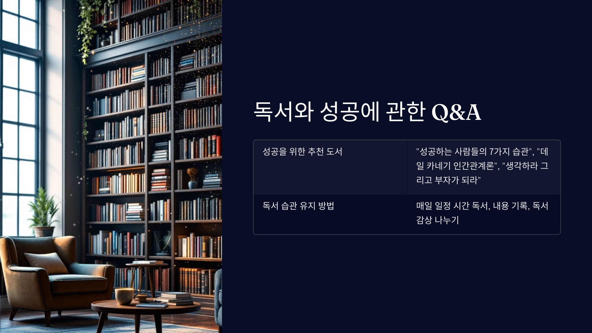 Q1. 성공을 위해 추천할 만한 도서가 있을까요?