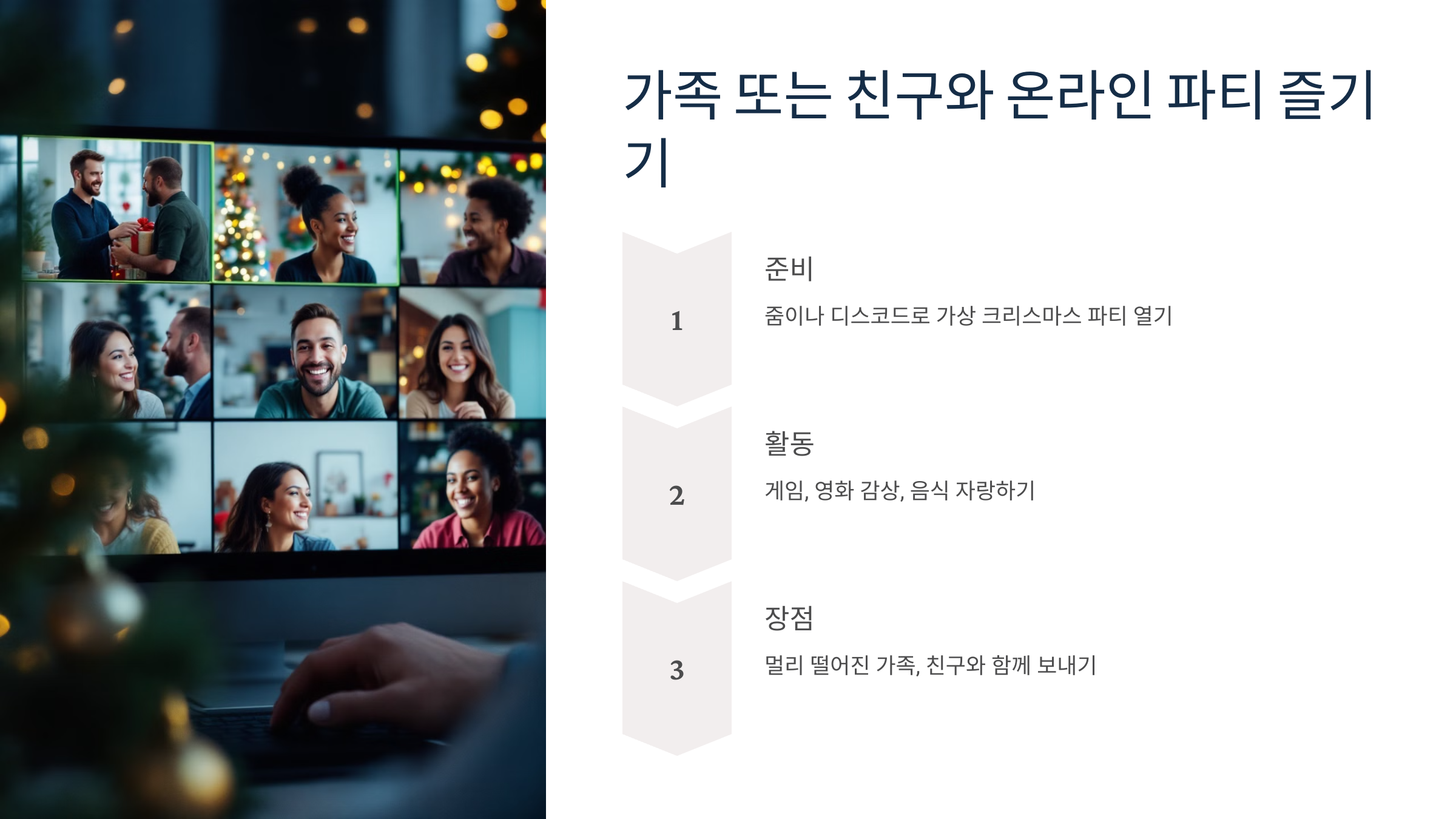 - 줌이나 디스코드로 가상 크리스마스 파티를 열어보세요.