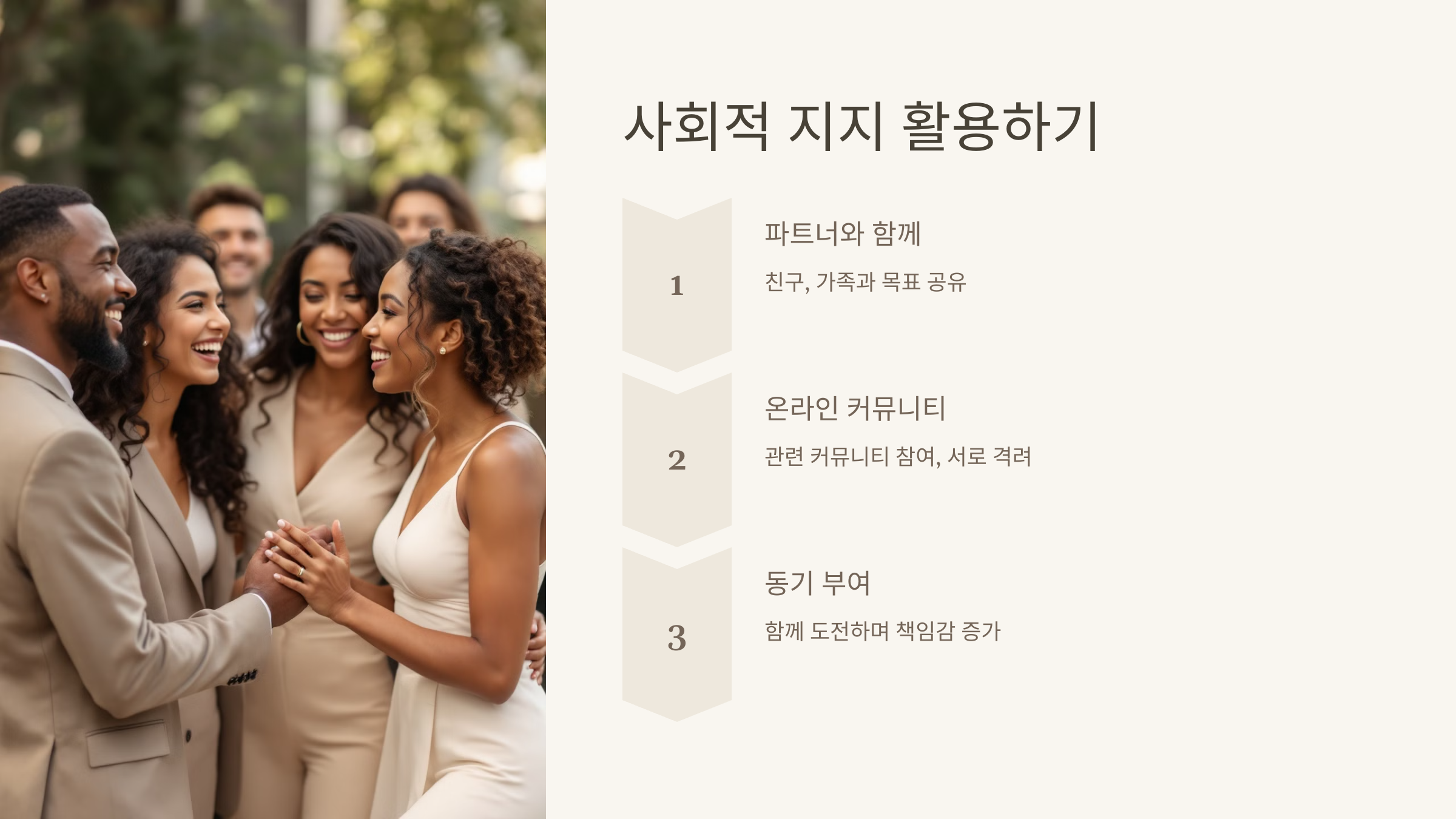 • 목표와 관련된 온라인 커뮤니티에 참여해 서로 격려.
