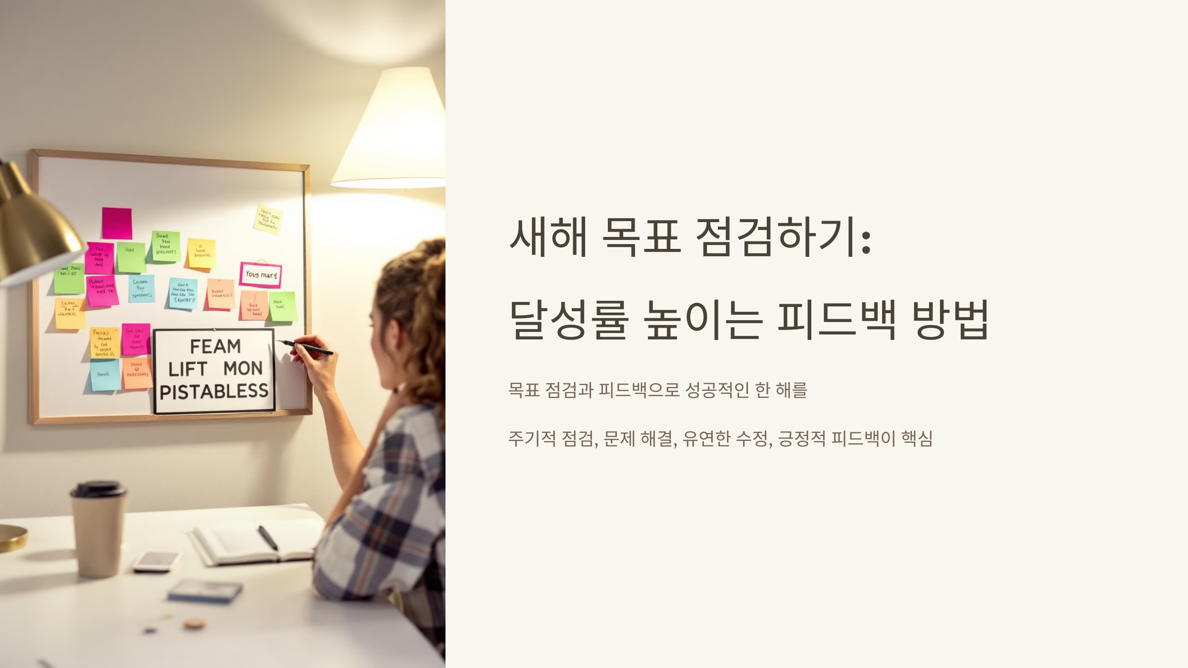 목표를 점검하지 않으면 방향을 잃거나 동기를 잃기 쉽죠. 꾸준한 점검과 올바른 피드백은 목표 달성률을 높이고, 한 해를 성공적으로 마무리하는 데 도움을 줍니다. 이번 글에서는 새해 목표 점검과 피드백 방법을 단계별로 소개합니다.