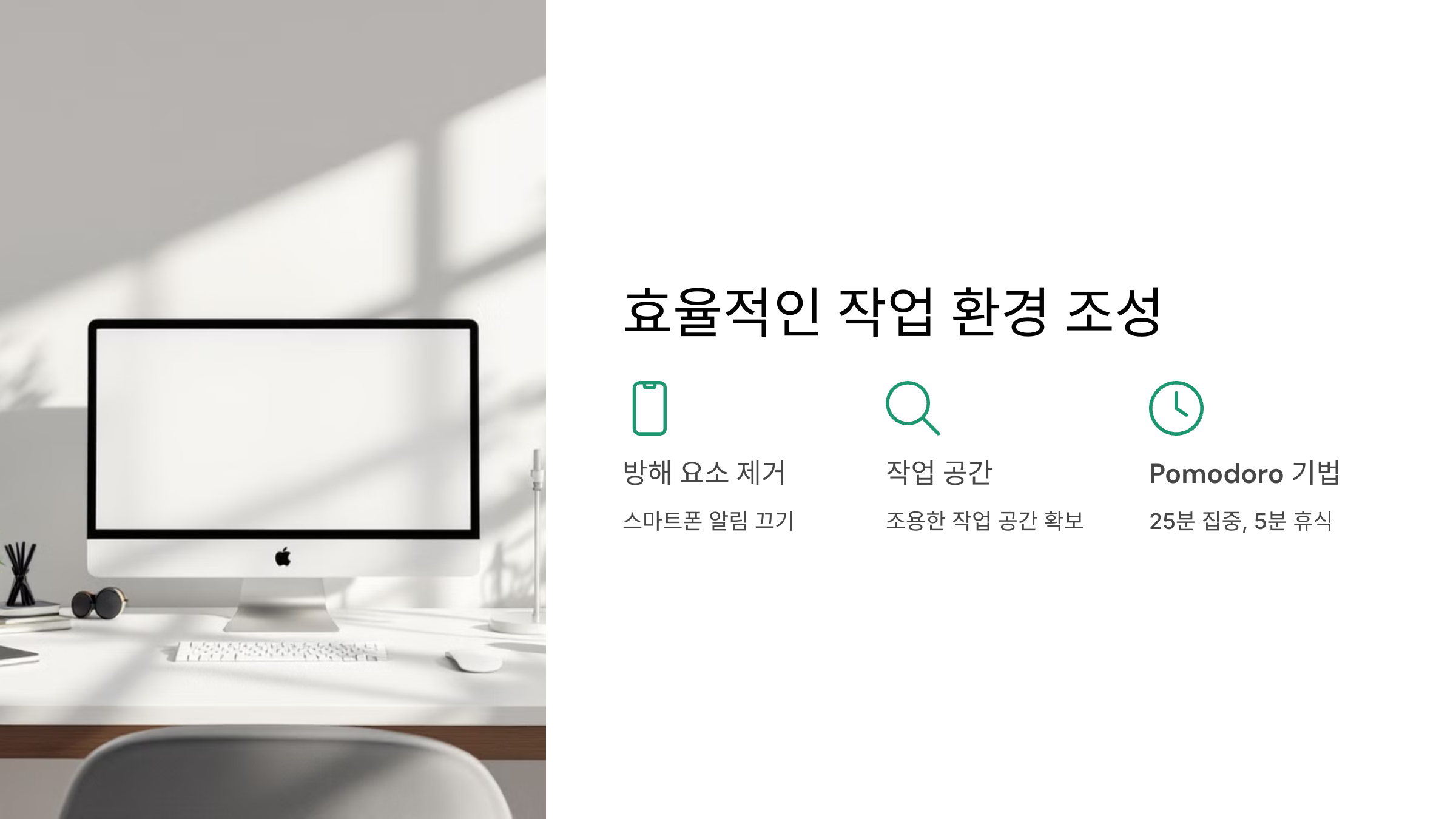 - 집중력을 높이는 환경 만들기: