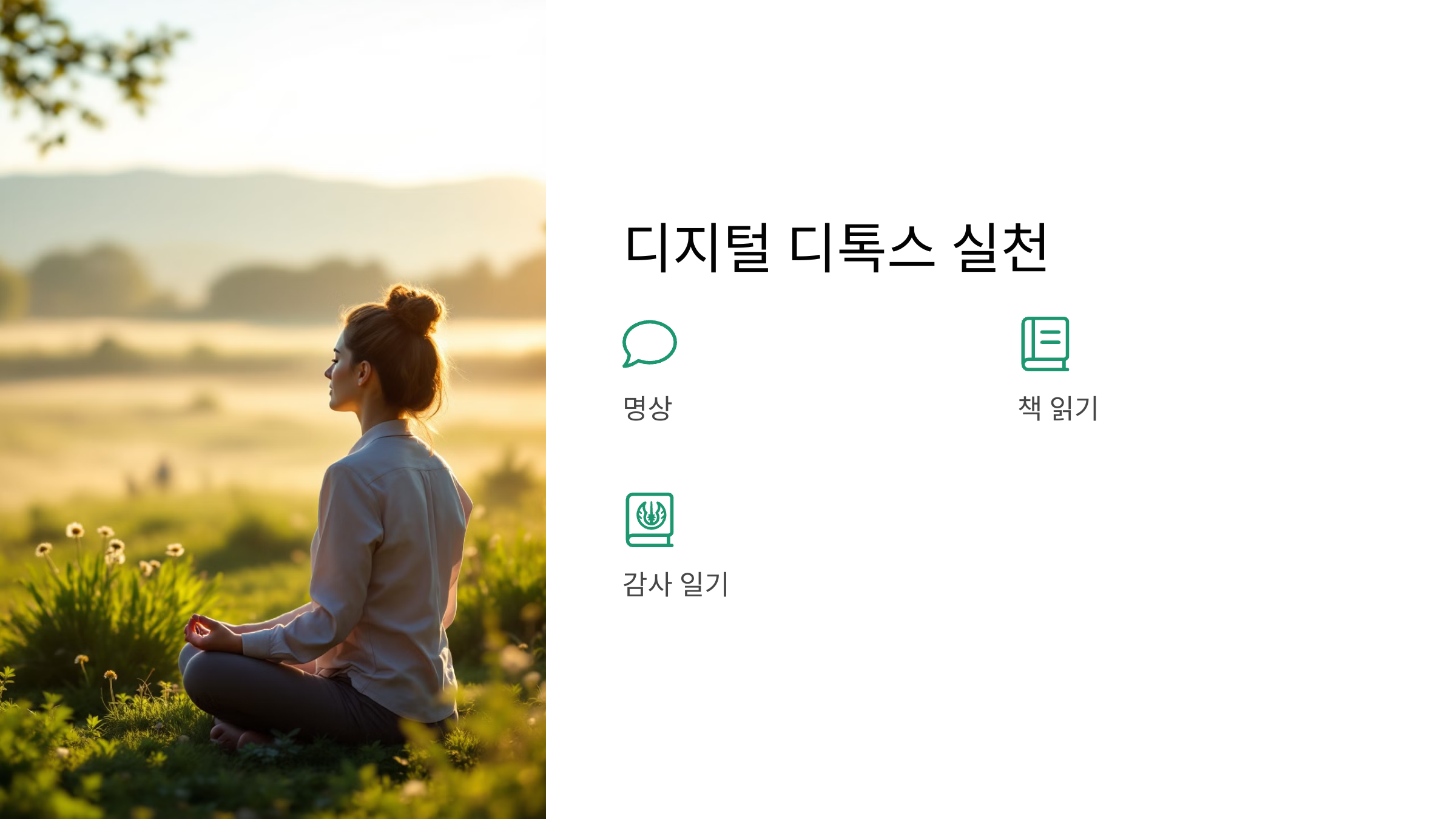 - 명상, 책 읽기, 감사 일기 쓰기.