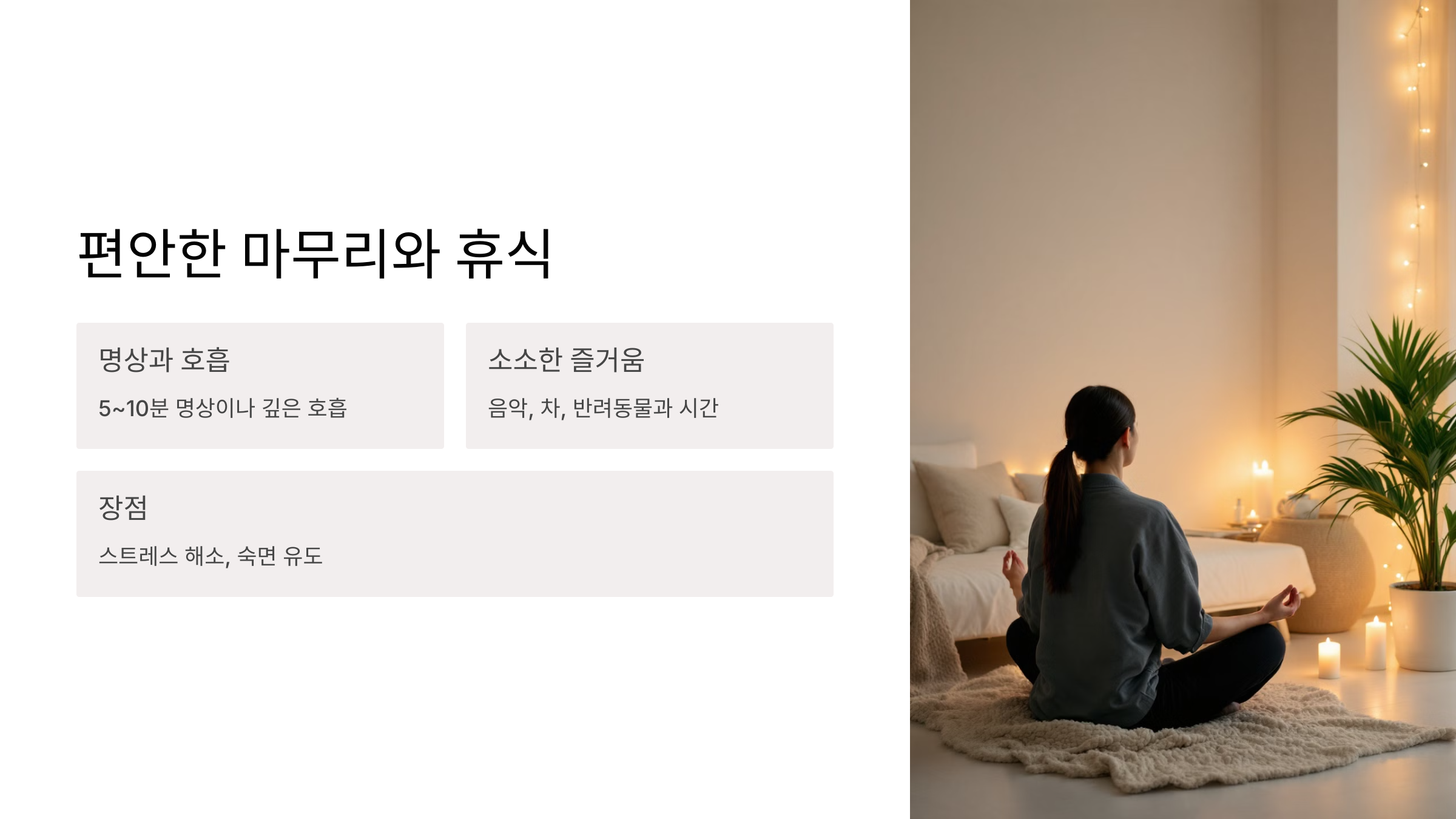 - 스트레스 해소와 숙면 유도.