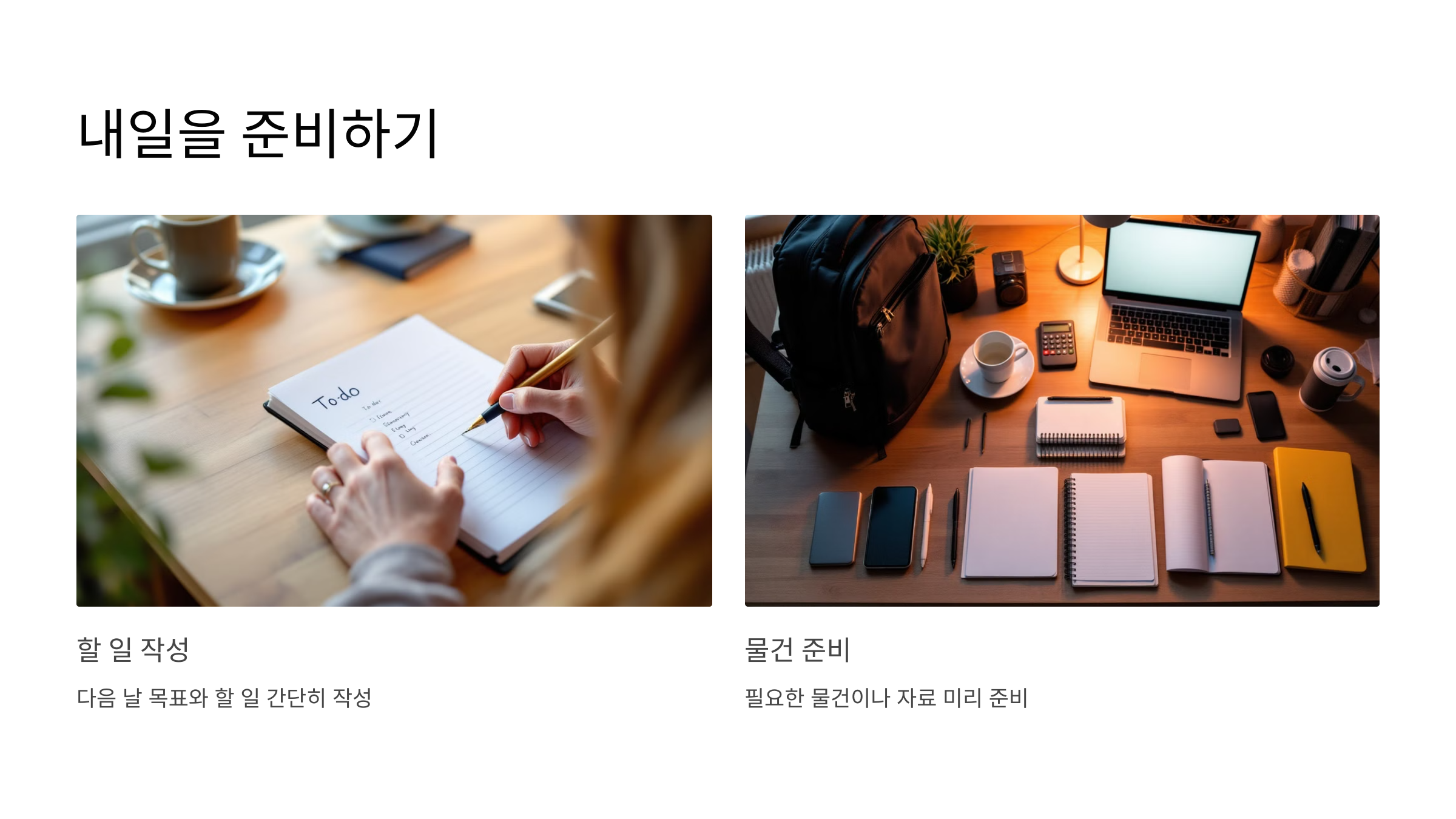 - 다음 날의 할 일과 목표를 간단히 작성합니다.