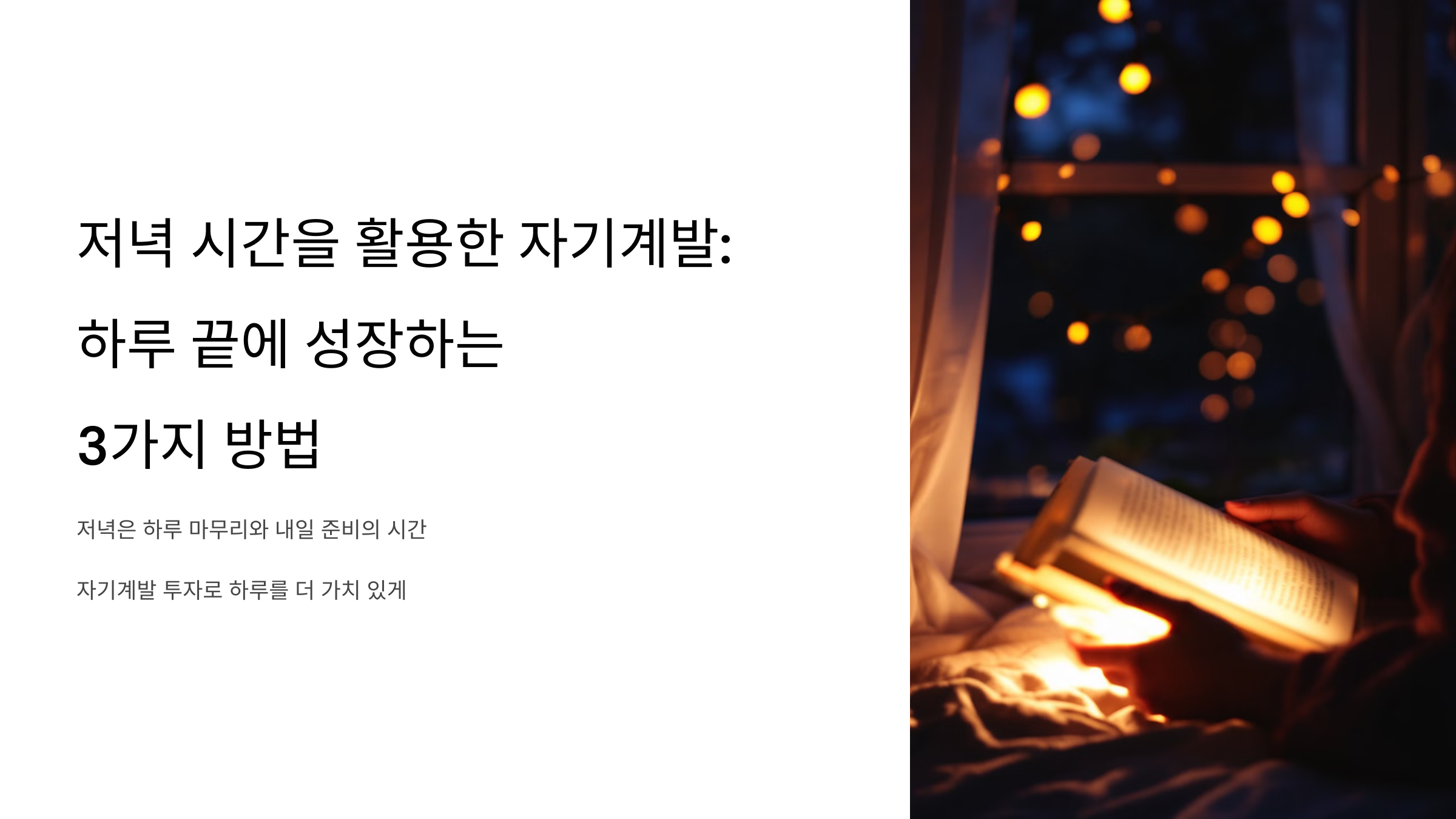 저녁은 하루를 마무리하며 내일을 준비할 수 있는 소중한 시간입니다. 단순히 휴식을 취하는 것 이상으로, 자기계발에 투자한다면 하루를 더욱 가치 있게 만들 수 있습니다. 이번 글에서는 저녁 시간을 활용해 성장할 수 있는 3가지 방법을 소개합니다.