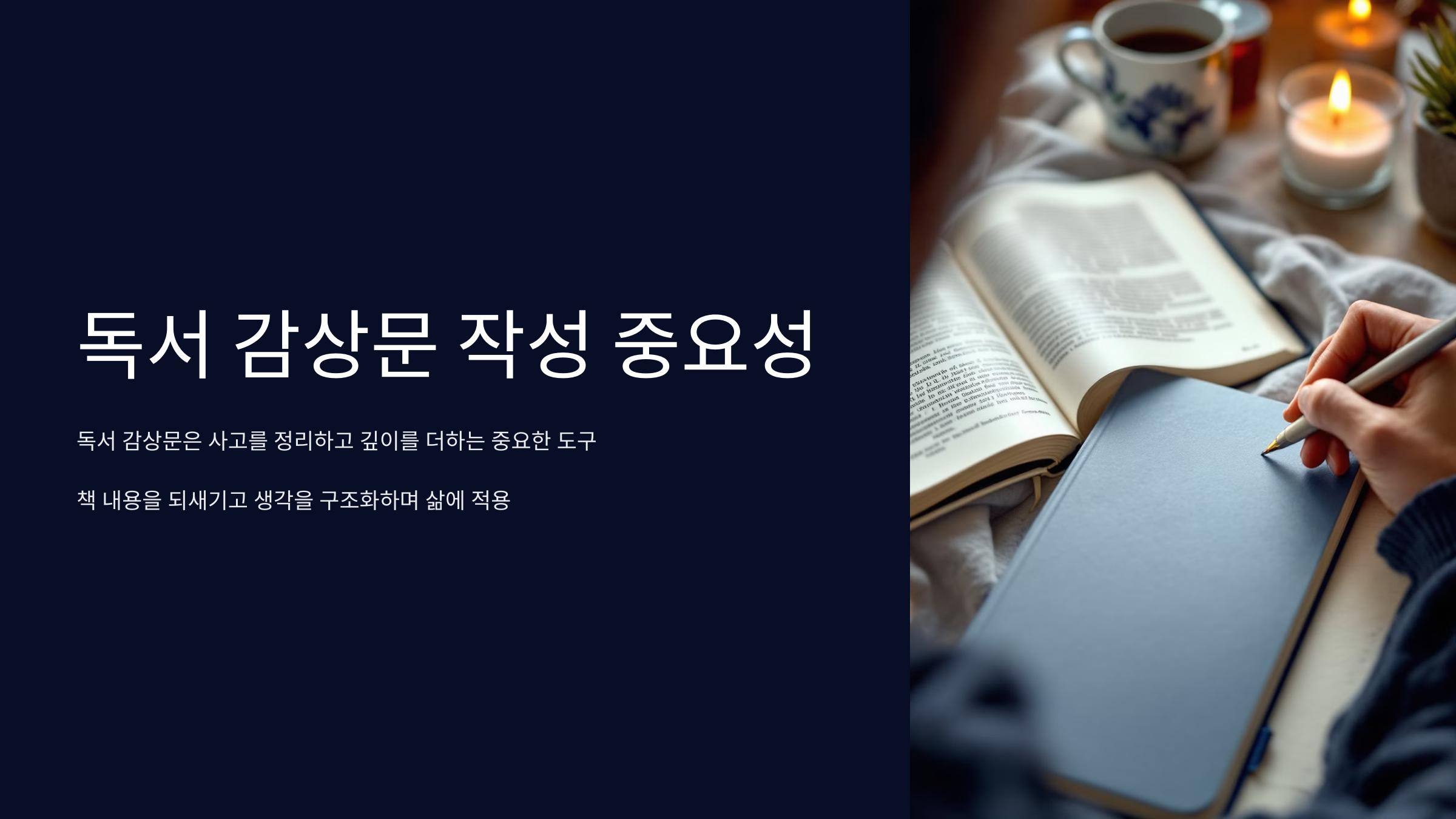 독서 감상문은 단순히 책을 요약하는 것이 아닙니다. 글을 쓰는 과정에서 우리는 책에서 배운 점을 자기 것으로 만들고, 생각을 정리하며 삶에 적용할 수 있는 실질적인 계획을 세울 수 있습니다. 지금 읽은 책을 바탕으로 짧게라도 감상문을 써보세요. 한 권의 책이 당신의 삶을 변화시키는 시작점이 될 수 있습니다.