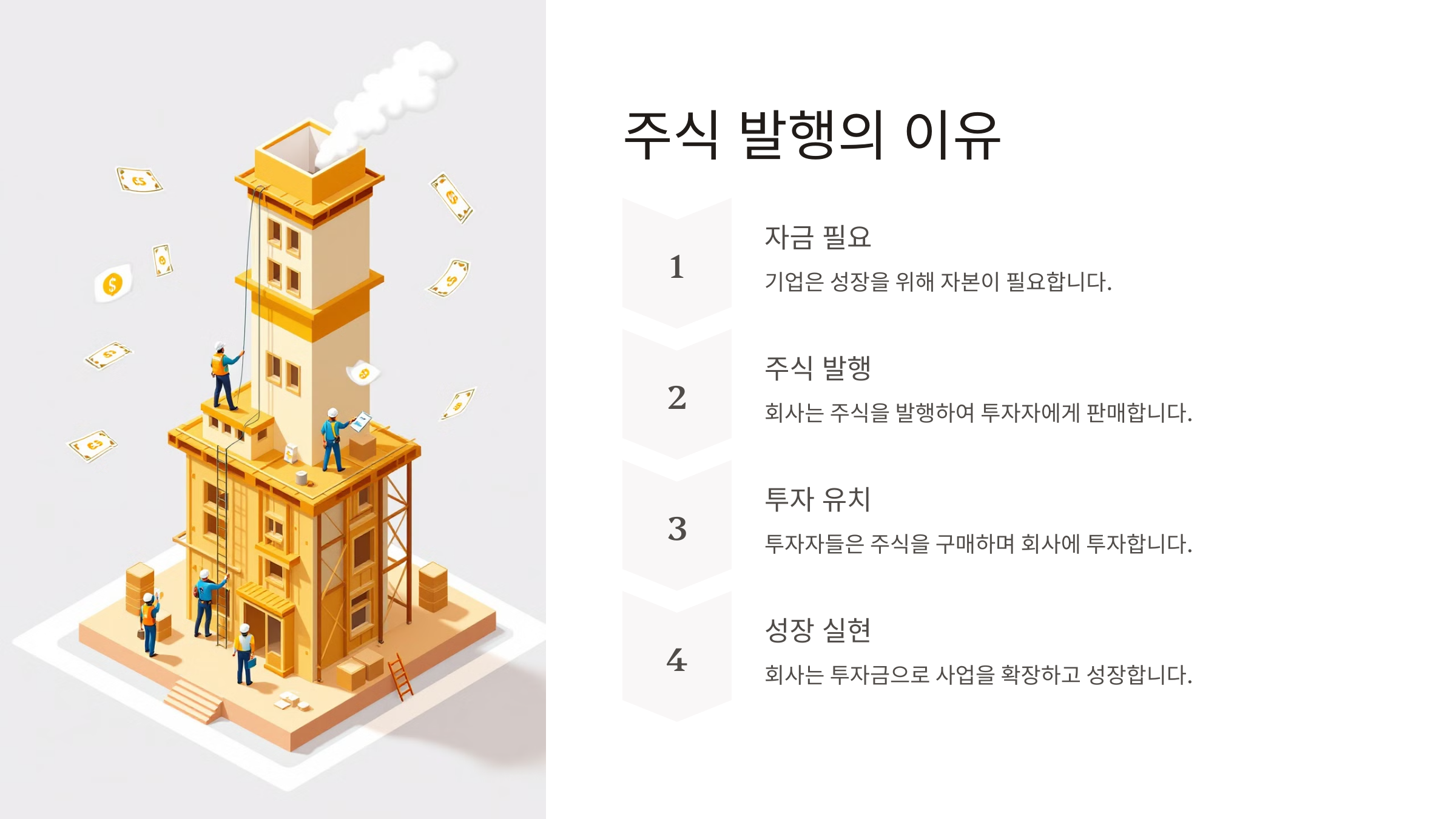 - 기업은 자금을 조달하고 성장할 수 있어요.