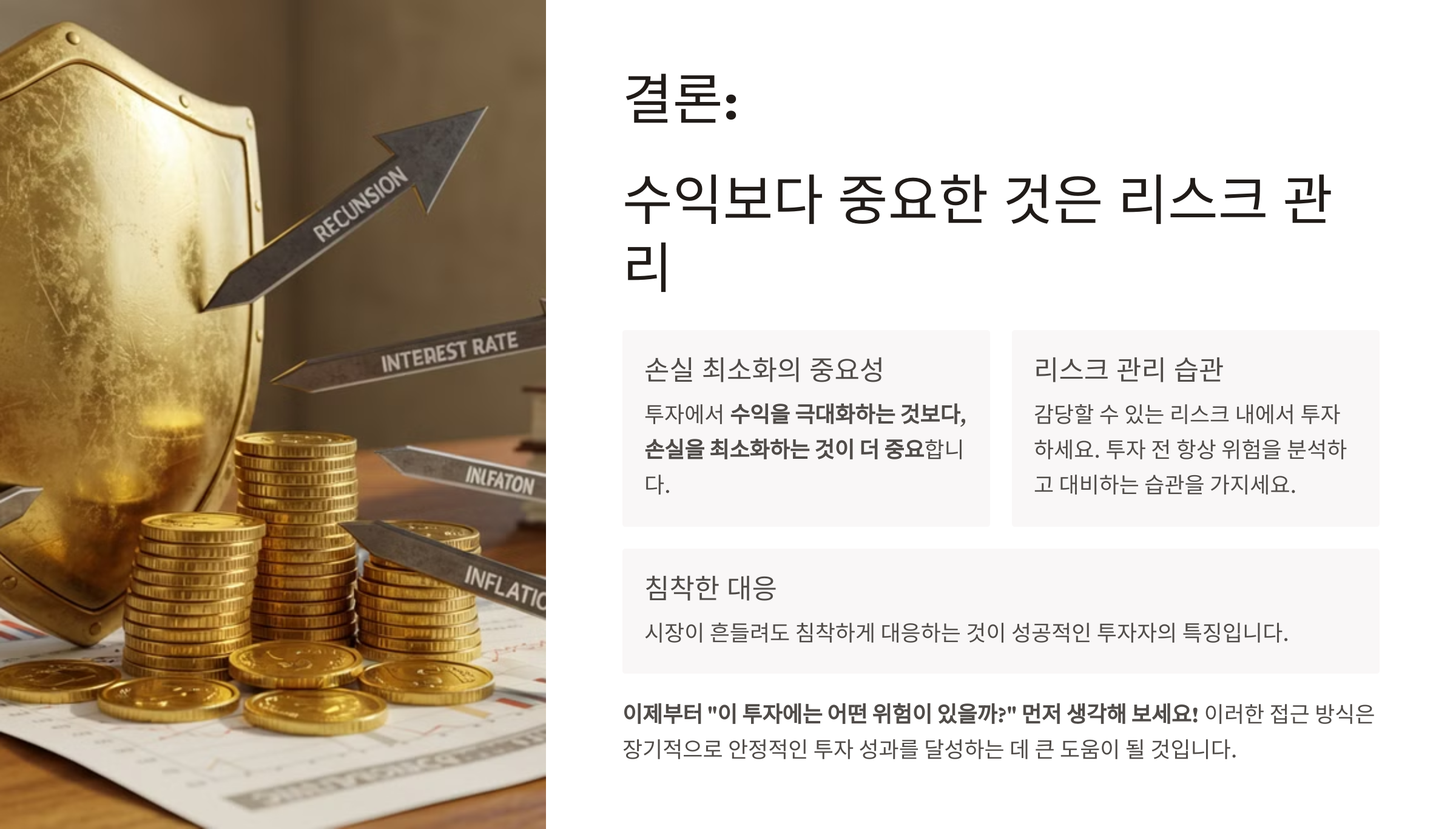 위험을 이해하고 대비하는 것이 안정적인 투자의 첫걸음입니다.