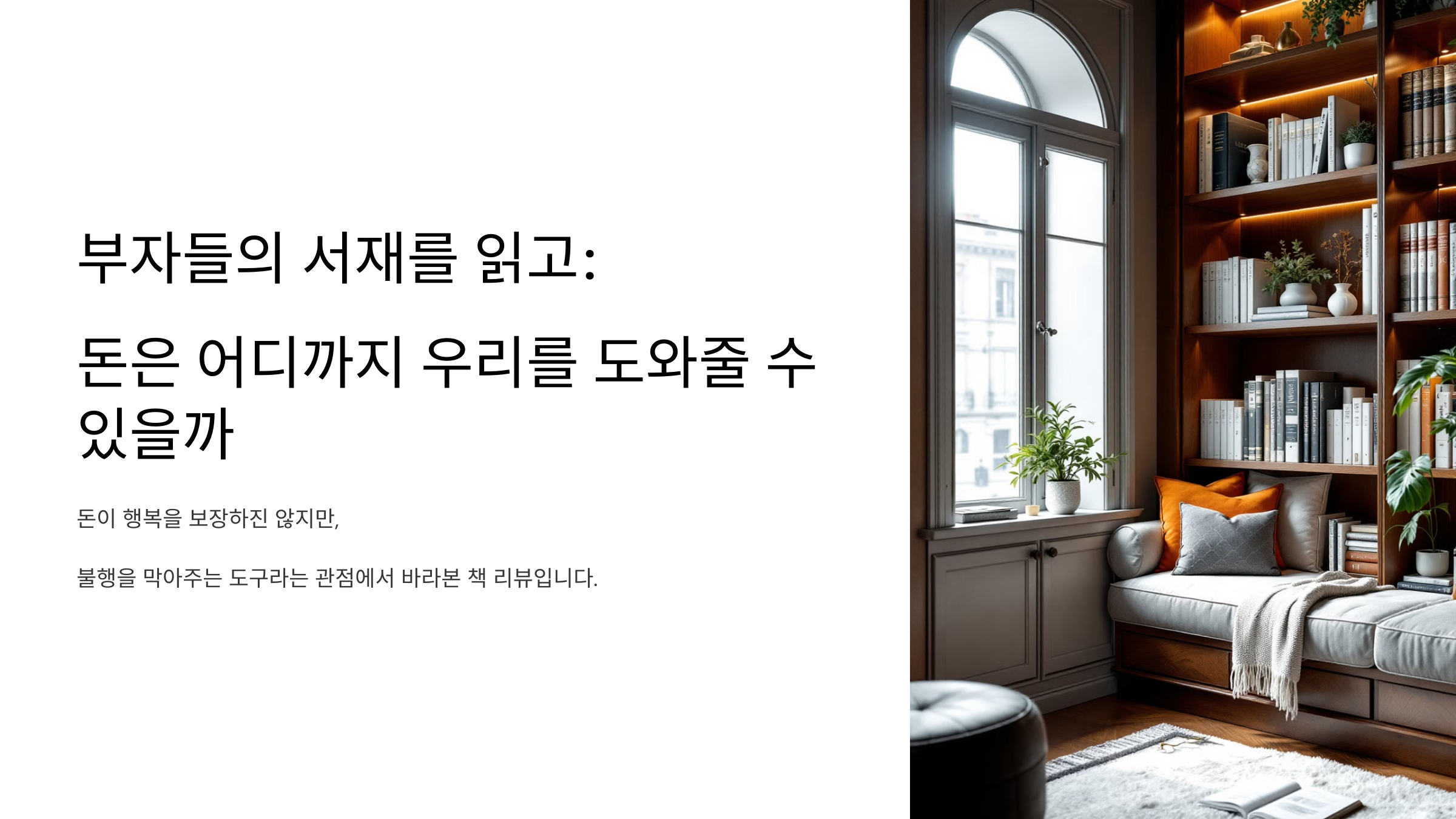 그래서 이 책에서 말한 “돈은 불행을 막아주는 도구”라는 말이 이상할 만큼 현실적으로 다가왔다.